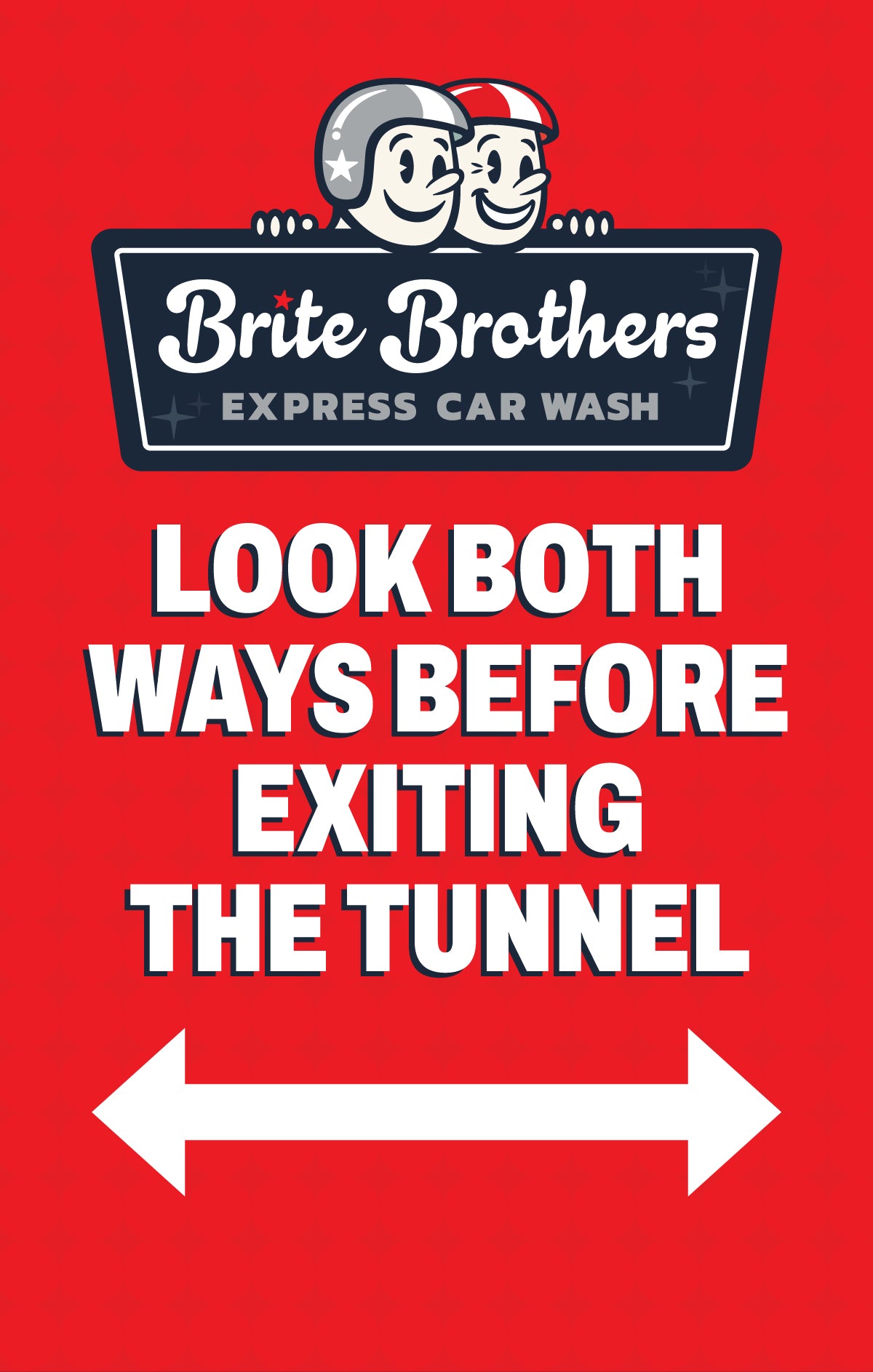Windmaster Insert 28" x 44" warning customers to look both ways when exiting the tunnel.